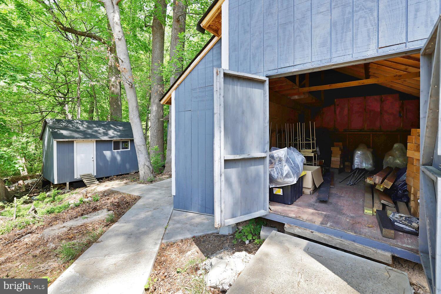 What truly sets this property apart are the two incredible detached workspaces with potential for rental income. * One structure offers 504 sq. ft. of flexible space--ideal for a home business, art studio, gym, office, or the ultimate she-shed--with an attic for even more storage. It has built in countertops and shelving. * The second workshop offers 294 sq. ft. is perfect for tools, DIY projects, or additional flex use. This space has built-in work benches/shelves and an island space for larger work projects with an additional large entry point as well as partial attic space for storage. * You'll also find two additional sheds with shelving and partial attic space, great for gardening equipment or general storage.