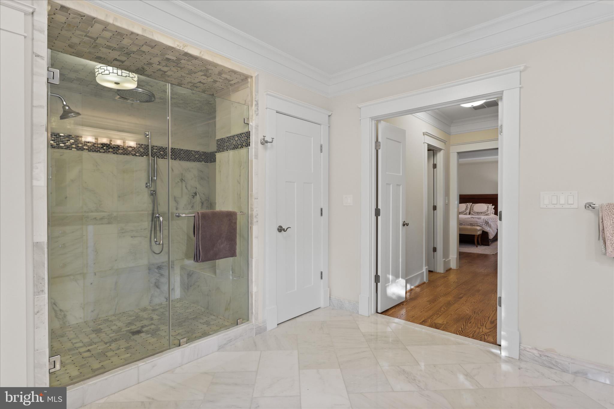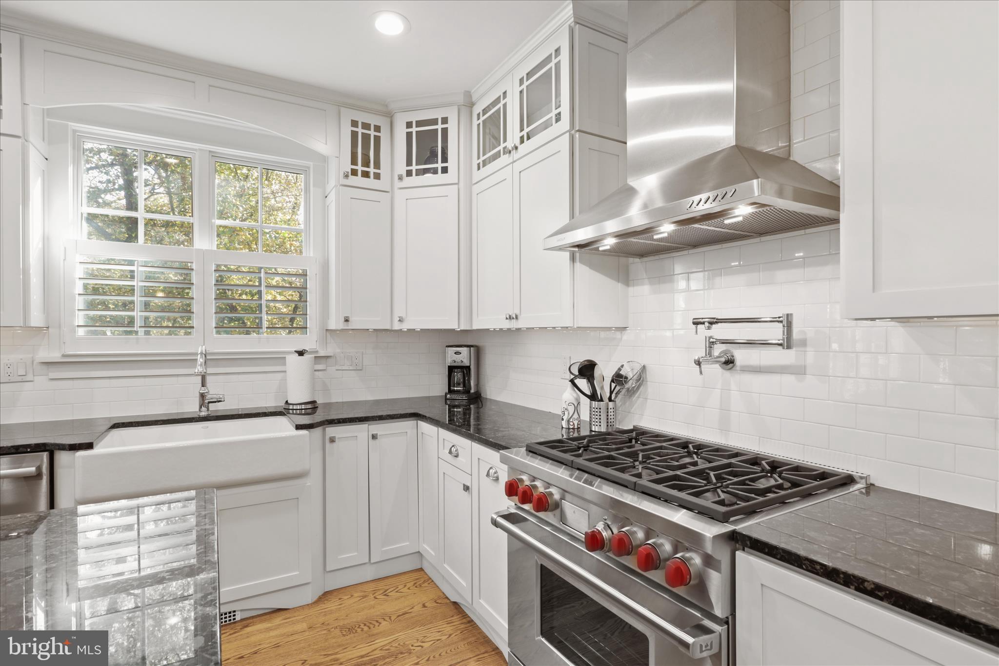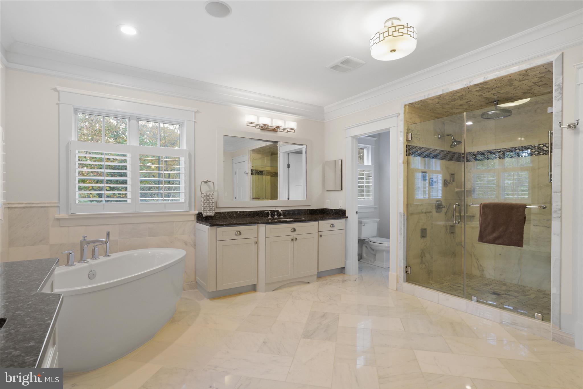 Nestled in the highly sought after neighborhood of Riverwood, this Stone/Hardie Plank Craftsman, 6008 sq. ft living area, 5-bedroom, 4.5-bathroom residence embodies the perfect blend of luxury and comfort. Eligible for Donaldson Run Swim Club, membership. Built in 2012, with a Slate roof is designed for those who appreciate high-end living and modern conveniences. As you step inside, you are greeted by an inviting foyer that leads to a Living Room, Den & spacious Family Room adorned with crown molding & coffered ceiling, Built-Ins and Fireplace, creating an ambiance of warmth and sophistication. The gourmet kitchen is a chef's dream, featuring Decora white Cabinets, upgraded Granite countertops, and Wolf and Sub-Zero appliances, large walk-in pantry, a butler's pantry, perfect for entertaining. The kitchen's island and table space provide a seamless flow for gatherings, while the formal dining room offers an elegant setting for special occasions. Retreat to the large Primary suite, where luxury meets tranquility. The en-suite Marble bathroom boasts a soaking tub, walk-in shower, and dual vanities, ensuring a spa-like experience. Each additional 4 bedrooms are generously sized, with ample closet space and easy access to beautifully appointed bathrooms. With two Gas fireplaces, cozy evenings are guaranteed. Walk-in Refrigerated Wine Cellar with 1400 bottle storage. Step outside to discover a Rare private oasis on a sprawling .79-acre private wooded lot. The exterior features a large 2 level Trex deck & screened porch and meticulously landscaped grounds that adjoin open space and Windy Run Parkland, providing serene views of the creek and surrounding trees. The property is designed for outdoor enjoyment, with an underground lawn sprinkler system ensuring your yard remains lush and inviting. Convenience is paramount, with an attached garage accommodating two vehicles and additional driveway. The home is strategically located near public transportation, making commuting a breeze. This residence not only offers luxurious living but also embodies sustainability with energy-efficient construction and appliances. Experience the exclusive lifestyle that this remarkable property provides, where every detail has been thoughtfully curated.