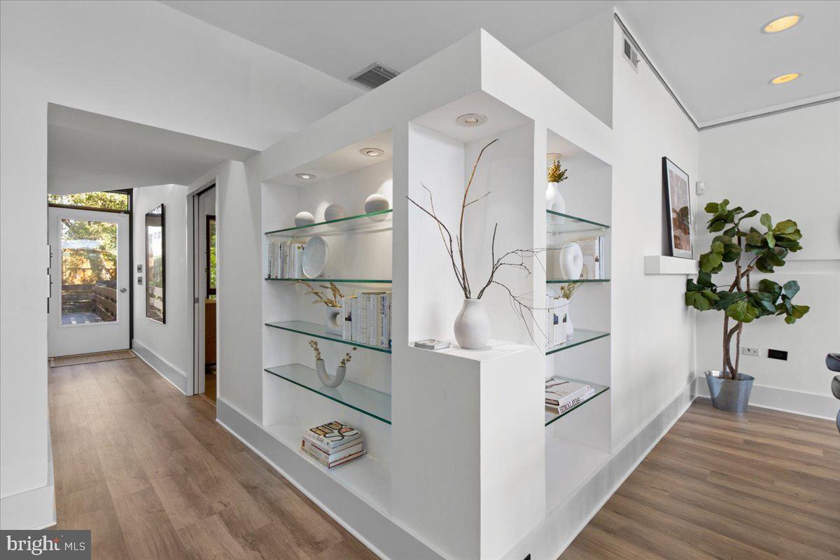 Enjoy the most spectacular views in the Palisades from this unique, modern, mixed-use property with five levels, multiple outdoor spaces, and many possibilities for configuration. Designed as a residential townhome perched above a two-level workspace, this special property, zoned MU-3, encompasses almost 4,000 finished square feet. From off-street parking at the rear of the property (with EV charger), enter the residential space via a custom footbridge overlooking a private oasis courtyard. Inside, find a renovated kitchen, an expansive open, sunlit living and dining area with soaring cathedral ceilings, and a private balcony with magnificent views, plus a bedroom with an ensuite bath. Move up to an open family room (3rd bedroom) flooded with light and second full bath. The top level features an additional bedroom, a wall of windows leading to a second balcony, plus access to a private roof-top terrace with 360 degree views - imagine watching the fireworks from this vantage point! The lower levels, accessible from inside the property and also from the MacArthur Blvd, offer a separate, contained space - for use as: office, work area, additional residential living space, use or rent out as office, gallery (or separate apartment with a few tweaks) - so many options! Perfect location with easy access to downtown, Virginia and on the same block with popular restaurants - Et Viola, Aracosia, Sweet Agave, and Bambu -plus Starbucks, MacMarket, UPS, Vet, and more. Enjoy the charm of walkable small-town Palisades living in a chic "downtown" home! This special property must be seen in person - sleek, spacious, and sophisticated you will be awed.