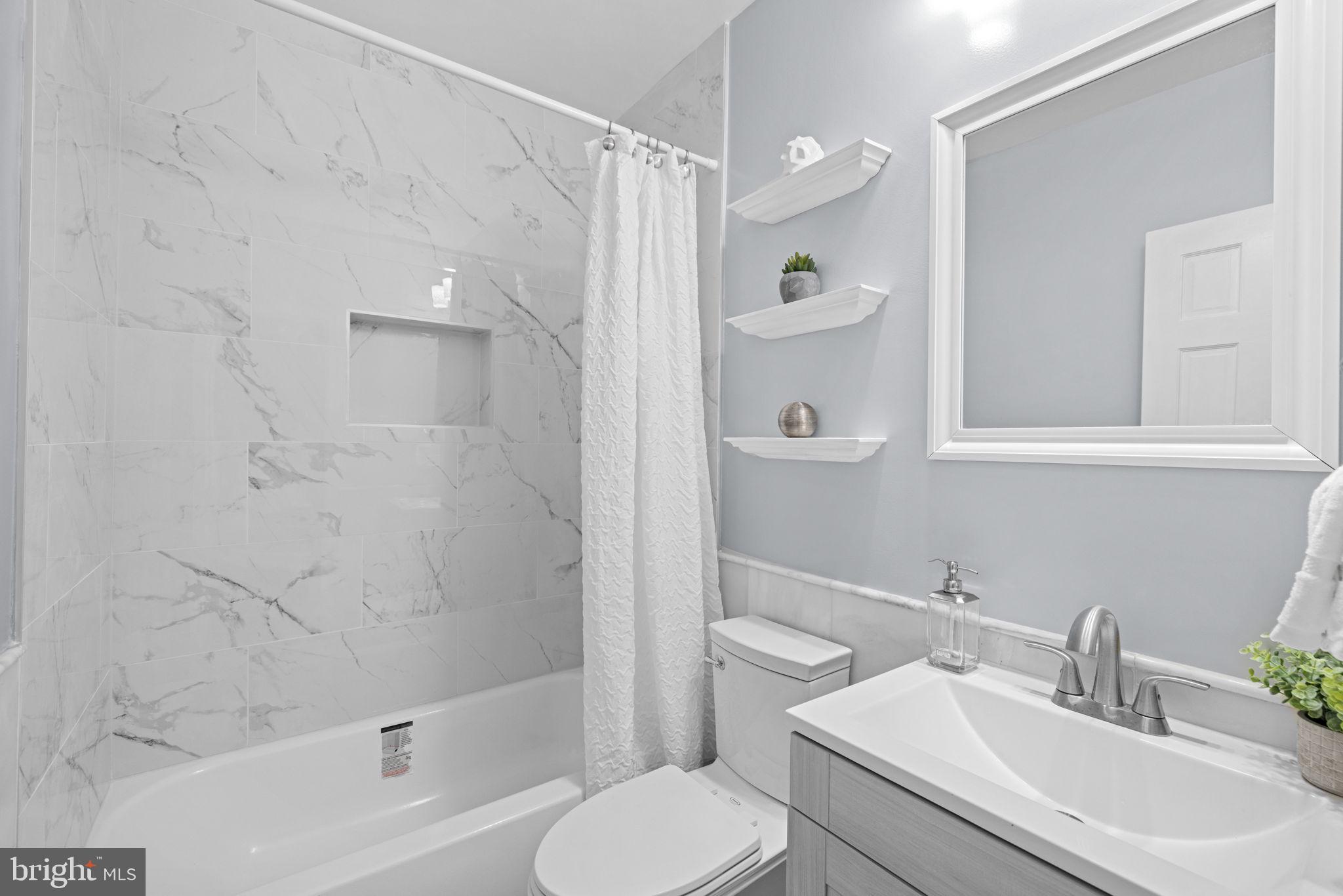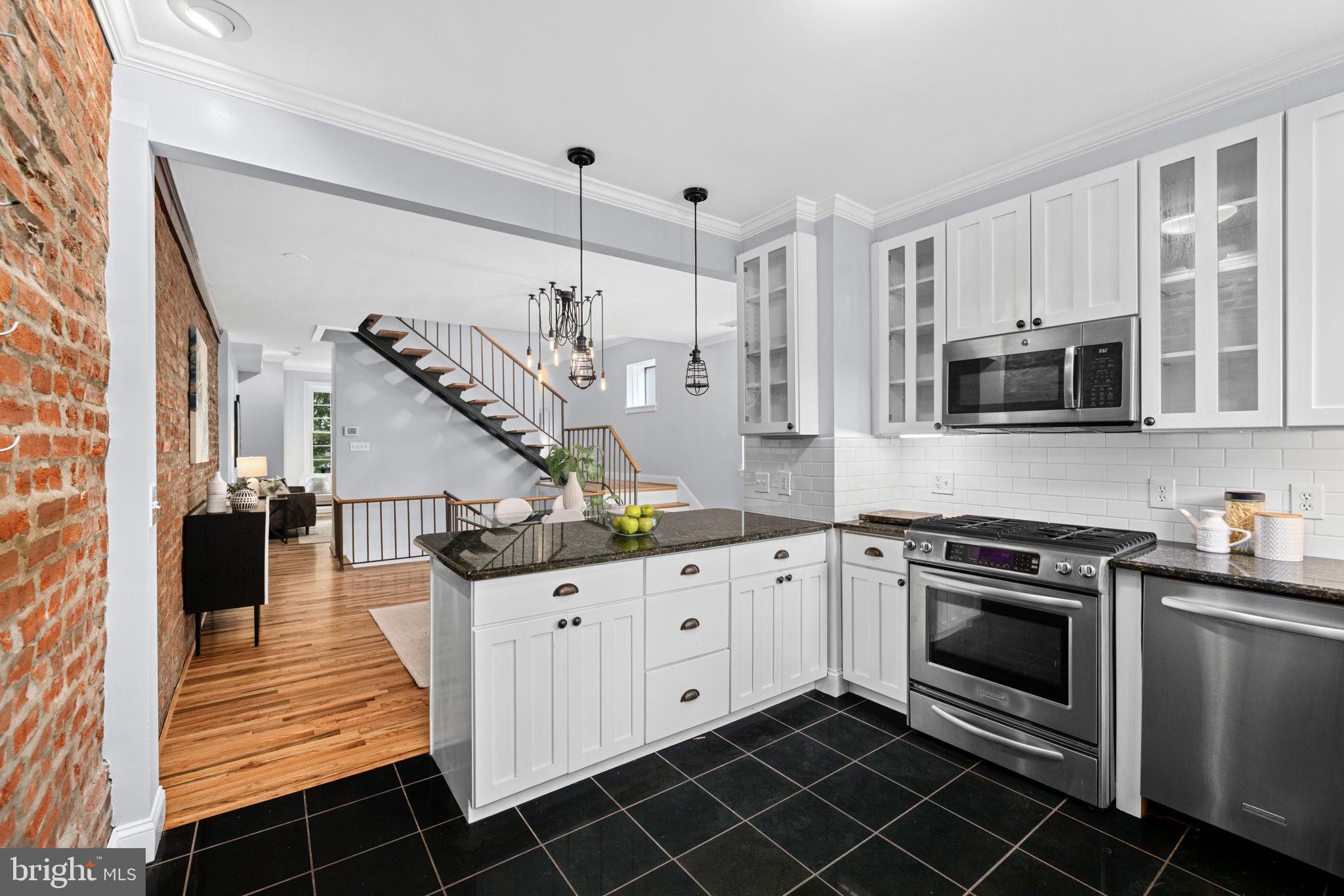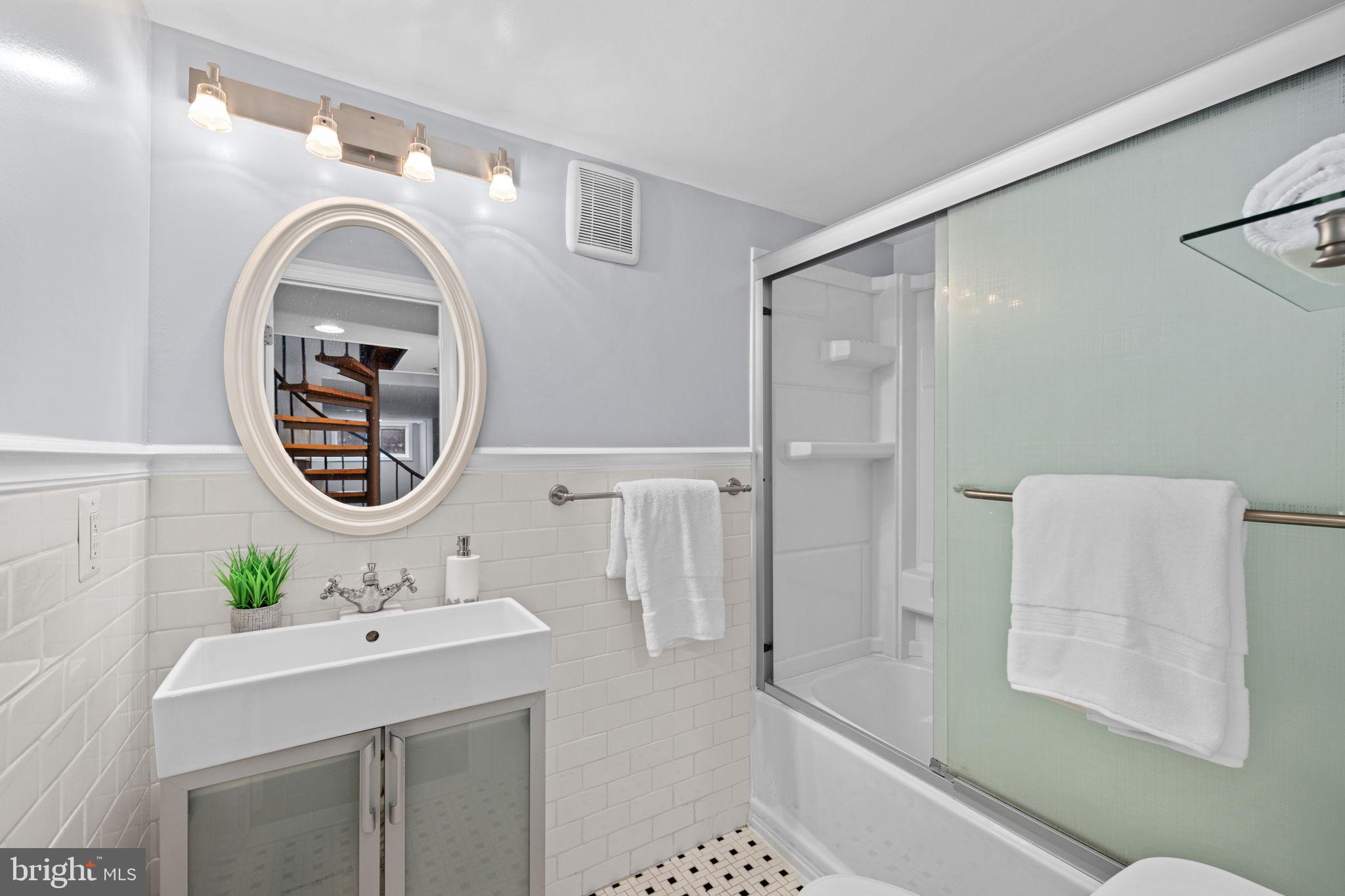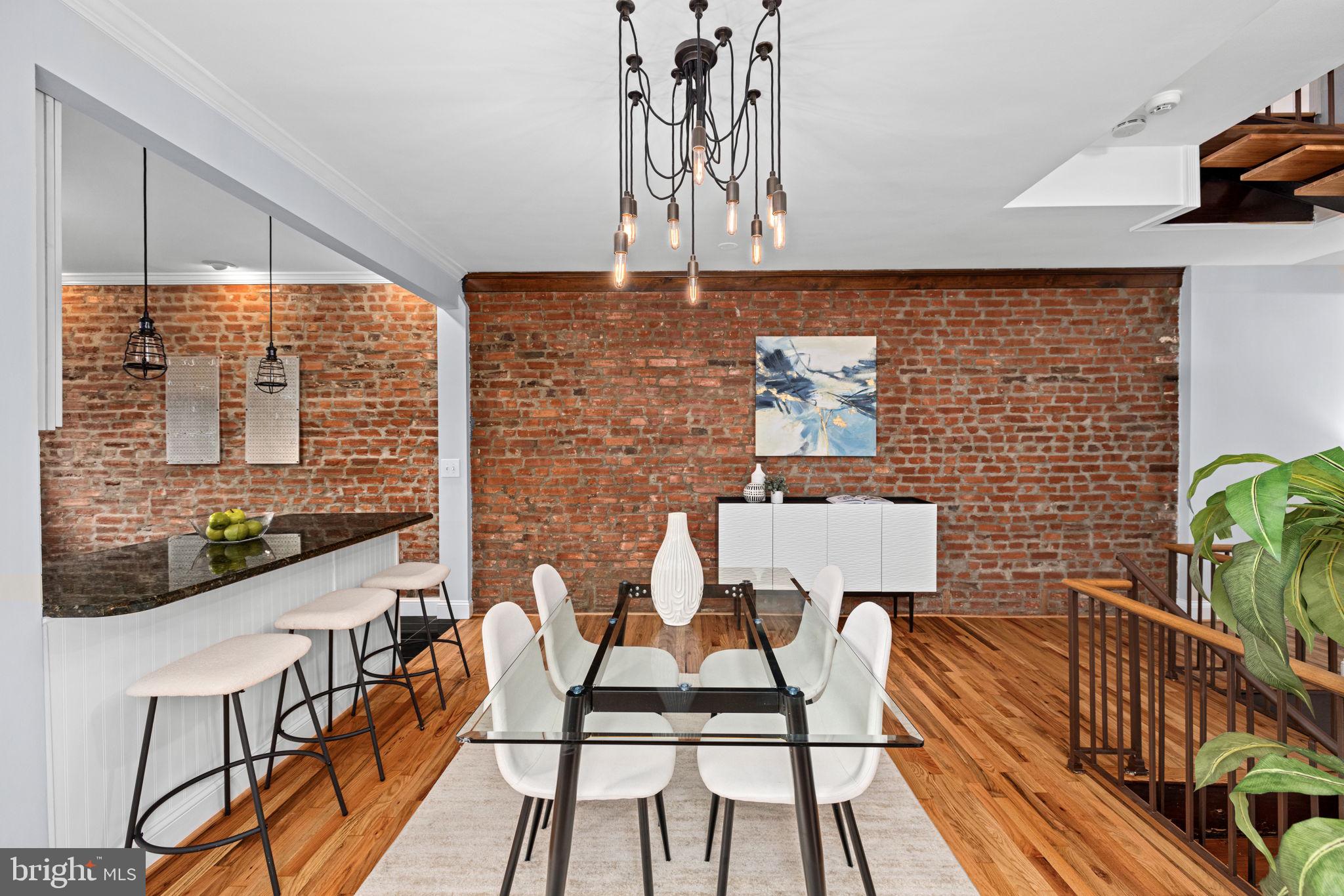 The newly refinished hardwood floors gleam on the living and sleeping levels. The sleeping level features a generous primary bedroom with a walk in closet and two additional true bedrooms with a renovated tubbed bath.